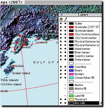 The Illustrator files have been improved in Version 4.0 and now include closed, pre-filled outline paths making custimzation much easier. The vector maps contain information on several layers including a total of 16,000 place names and labelled features. The layering system has been sensibly organized giving access to a good range of map elements without being too complex.