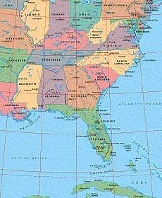 Alabama, Arkansas, Delaware, Florida, Georgia, Illinois, Indiana, Kentucky, Louisiana, Maryland, Mississippi, Missouri, New Jersey, North Carolina, Ohio, Pennsylvania, South Carolina, Tennessee, Virginia, D.C., West Virginia, Bahamas, Cuba, USA, |